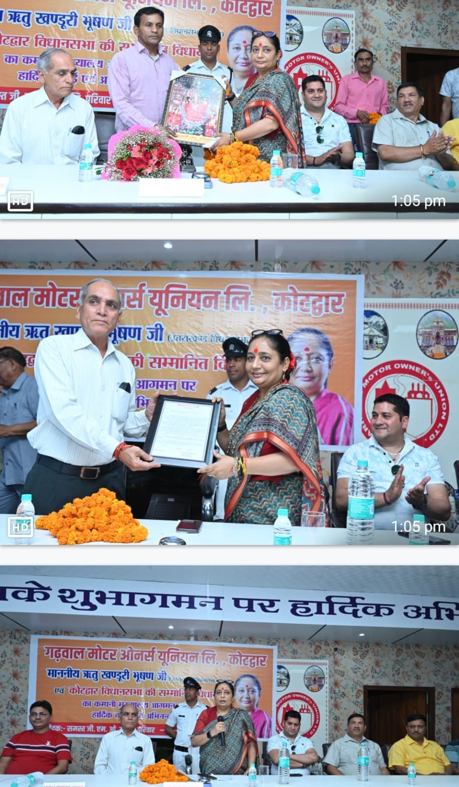 उत्तराखंड विधानसभा अध्यक्ष, ऋतु खण्डूडी भूषण, ने कोटद्वार स्थित गढ़वाल मोटर्स ऑनर यूनियन (GMOU) लिमिटेड के सभागार में आयोजित एक विशेष कार्यक्रम में मुख्य अतिथि के रूप में प्रतिभाग किया। यह कार्यक्रम यूनियन के नवगठित संचालक मंडल के गठन के उपलक्ष्य में आयोजित किया गया था।