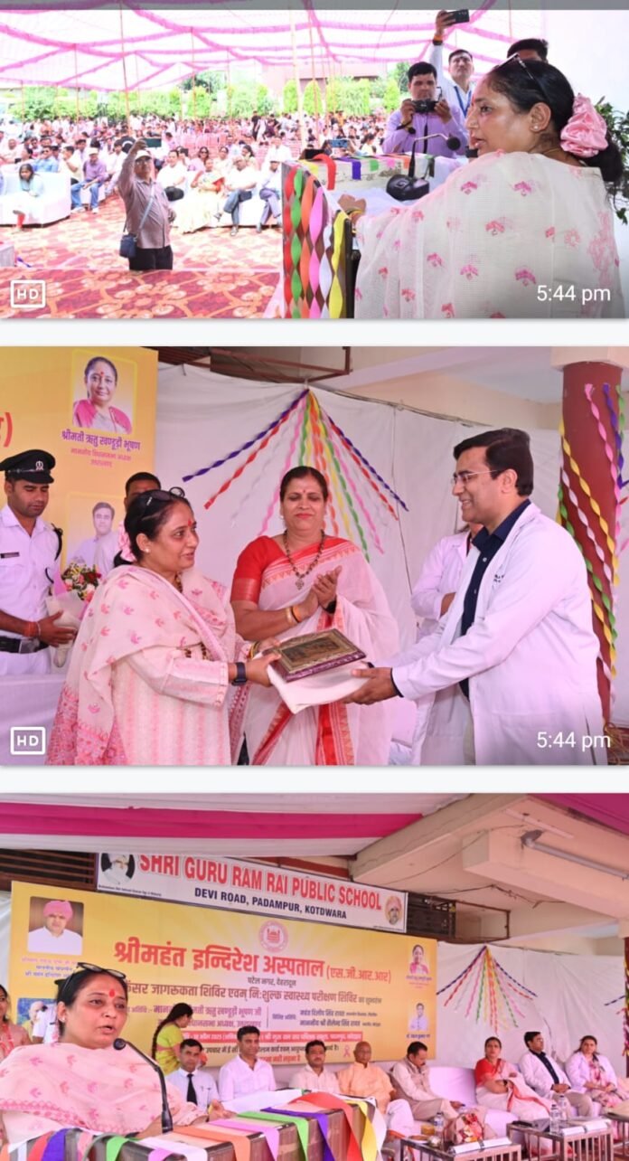 विधानसभा अध्यक्ष ऋतु खण्डूडी भूषण ने कोटद्वार विधानसभा के एस.जी.आर.आर पब्लिक स्कूल के प्रांगण में श्री महंत इंद्रेश अस्पताल द्वारा कैंसर जागरूकता शिविर एवं निशुल्क स्वास्थ्य परीक्षण शिविर में बतौर मुख्य अतिथि दीप प्रज्वलित कर कार्यक्रम का शुभारंभ किया ।