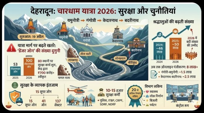 देहरादून: चारधाम यात्रा 2026 की शुरुआत इस महीने 19 अप्रैल से होने जा रही है। हर साल बढ़ती श्रद्धालुओं की संख्या के बीच इस बार यात्रा मार्ग पर मौजूद ‘डेंजर जोन’ सरकार और प्रशासन के लिए बड़ी चिंता का विषय बने हुए हैं।