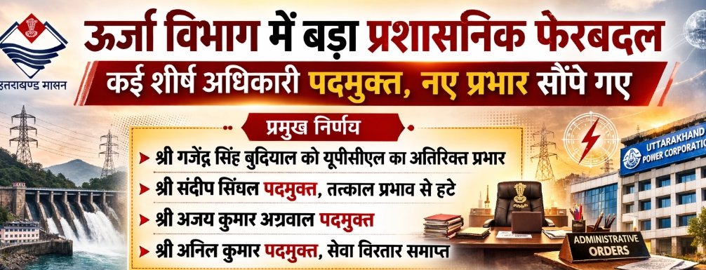 बड़ी कार्रवाई: ऊर्जा विभाग में बड़ा प्रशासनिक फेरबदल, कई शीर्ष अधिकारी पदमुक्त, इनको दी गई जिम्मेदारी