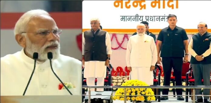 नई दिल्ली में इंदिरा गांधी इंडोर स्टेडियम में आयोजित समारोह को संबोधित करते हुए प्रधानमंत्री ने कहा कि वंदे मातरम एक मंत्र, एक ऊर्जा, एक सपना और एक संकल्प है। उन्होंने इसकी सराहना करते हुए कहा कि यह भारत माता के प्रति भक्ति और श्रद्धा है जो हमें इतिहास की याद दिलाता है, वर्तमान को आत्मविश्वास से भर देता है और भविष्य में एक नए साहस का संचार करता है जिससे यह विश्वास पैदा होता है कि किसी भी संकल्प और लक्ष्य पूरा किया जा सकता है। उन्होंने वंदे मातरम के सामूहिक गान की प्रशंसा करते हुए कहा कि इसके सुखद अहसास को शब्दों में व्यक्त नहीं किया जा सकता। उन्होंने कहा बंकिमचंद्र चट्टोपाध्याय ने इस गीत के माध्यम से स्वतंत्र, एकजुट और समृद्ध भारत का आह्वान किया था।