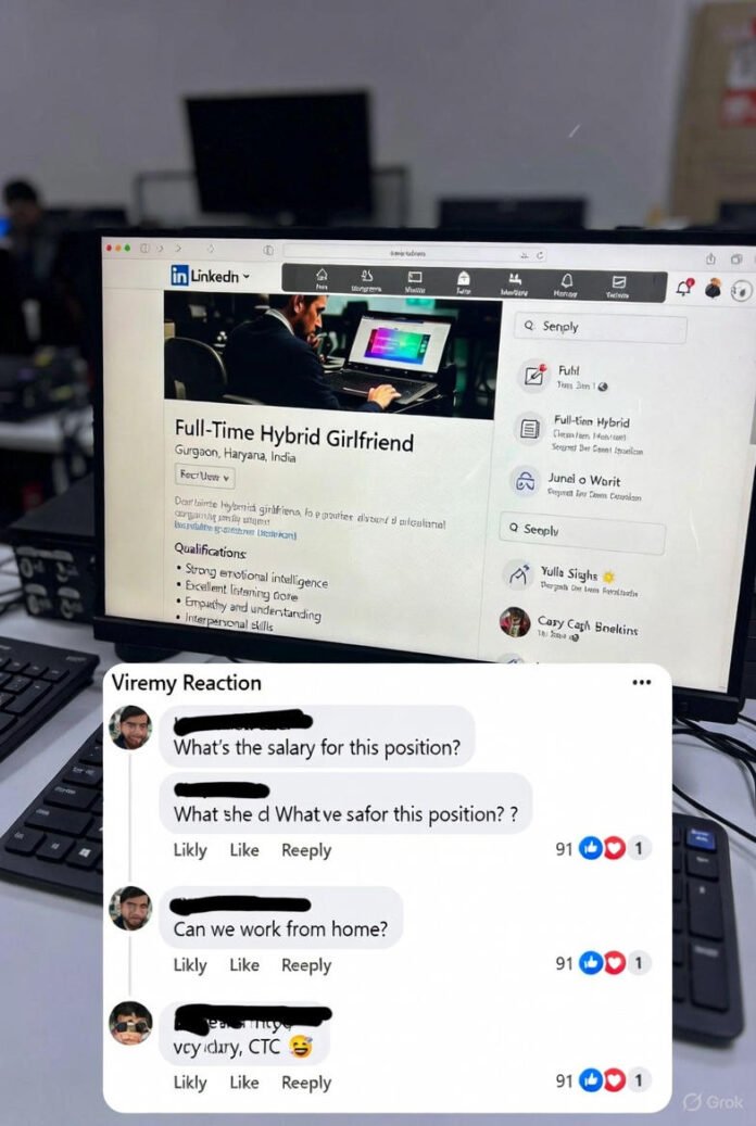 नई दिल्ली: सोशल मीडिया प्लेटफॉर्म लिंक्डइन, जो आमतौर पर प्रोफेशनल जॉब्स और नेटवर्किंग के लिए जाना जाता है, इस बार एक अनोखे ‘जॉब पोस्ट’ की वजह से सुर्खियों में है। गुरुग्राम में रहने वाले एक व्यक्ति दिनेश ने ‘फुल-टाइम हाइब्रिड गर्लफ्रेंड’ की वैकेंसी पोस्ट की है, जिसमें विस्तृत योग्यताएं बताई गई हैं। यह पोस्ट तेजी से वायरल हो रही है और यूजर्स मजाकिया अंदाज में ‘सैलरी पैकेज’ और ‘CTC’ के बारे में पूछ रहे हैं।