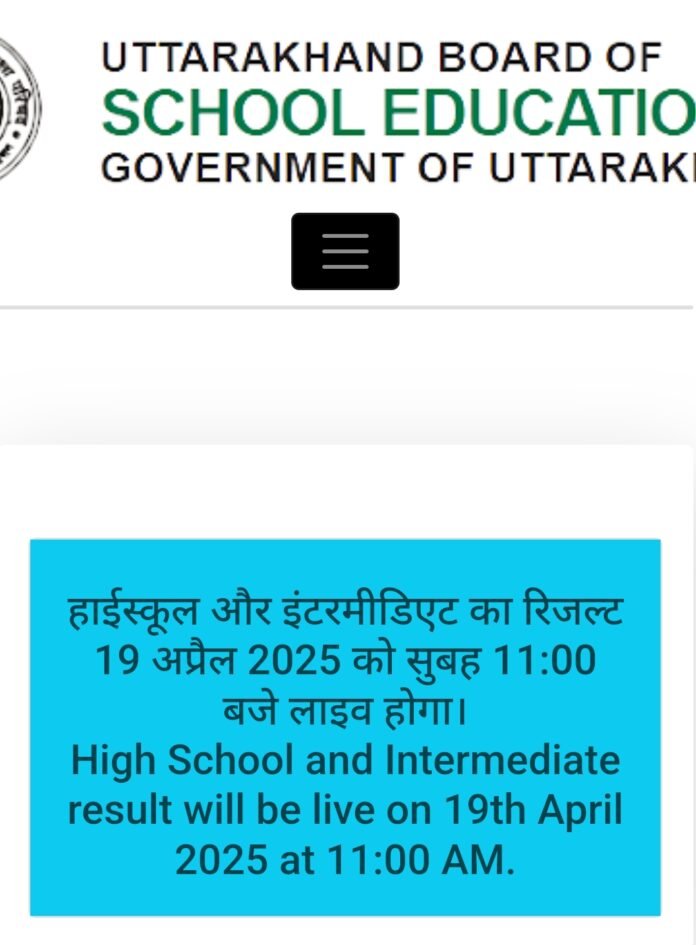 देहरादून:  उत्तराखंड बोर्ड ऑफ स्कूल एजुकेशन (UBSE) आज, 19 अप्रैल 2025 को सुबह 11:00 बजे कक्षा 10वीं और 12वीं बोर्ड परीक्षाओं के परिणाम घोषित करने जा रहा है। लगभग 2.25 लाख छात्र, जो अपने परिणामों का बेसब्री से इंतजार कर रहे हैं।